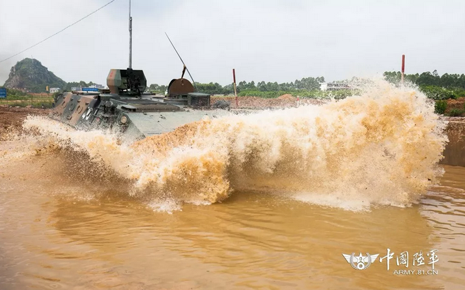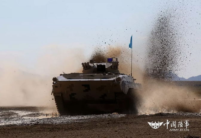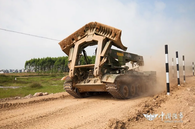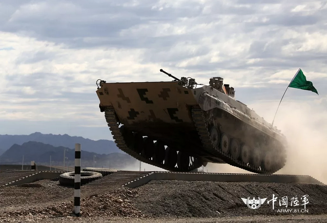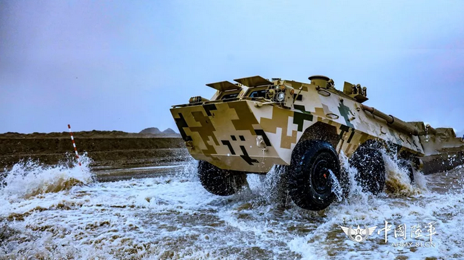 集訓(xùn)官兵駕駛戰(zhàn)車快速通過車轍橋