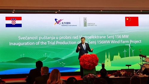 2021年12月7日,中國(guó)兵器工業(yè)集團(tuán)有限公司北方公司所屬北方國(guó)際投資、建設(shè)和運(yùn)營(yíng)的塞尼156MW風(fēng)電項(xiàng)目在克羅地亞首都薩格勒布隆重舉行并網(wǎng)發(fā)電儀式??肆_地亞總理安德烈·普連科維奇,中國(guó)駐克羅地亞大使齊前進(jìn)出席儀式并致辭,國(guó)家發(fā)展和改革委員會(huì)副主任寧吉喆、中國(guó)兵器工業(yè)集團(tuán)有限公司董事長(zhǎng)焦開(kāi)河,克羅地亞駐華大使達(dá)里歐·米海林視頻出席儀式并致辭。普連科維奇、齊前進(jìn)、北方公司副總裁王一彤共同按下了象征塞尼風(fēng)電項(xiàng)目遠(yuǎn)程遙控的紅色按鈕,隨著一臺(tái)又一臺(tái)風(fēng)機(jī)轉(zhuǎn)動(dòng),標(biāo)志著該項(xiàng)目正式并網(wǎng)發(fā)電。