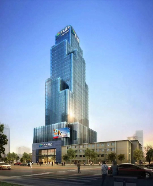 河北銀行股份有限公司新辦公樓建筑物位于石家莊市長安區(qū)建設(shè)南大街21號,占地面積10408平方米,建筑面積110453.13平方米,總高度166.8 米。方案在設(shè)計過程中充分考慮到設(shè)計需求,在遵循節(jié)源開流原則、現(xiàn)代辦公原則、以人為本原則、綠色環(huán)保原則的基礎(chǔ)上營造簡潔大方、安全實用、綠色環(huán)保、科技敏捷的現(xiàn)代辦公氛圍。