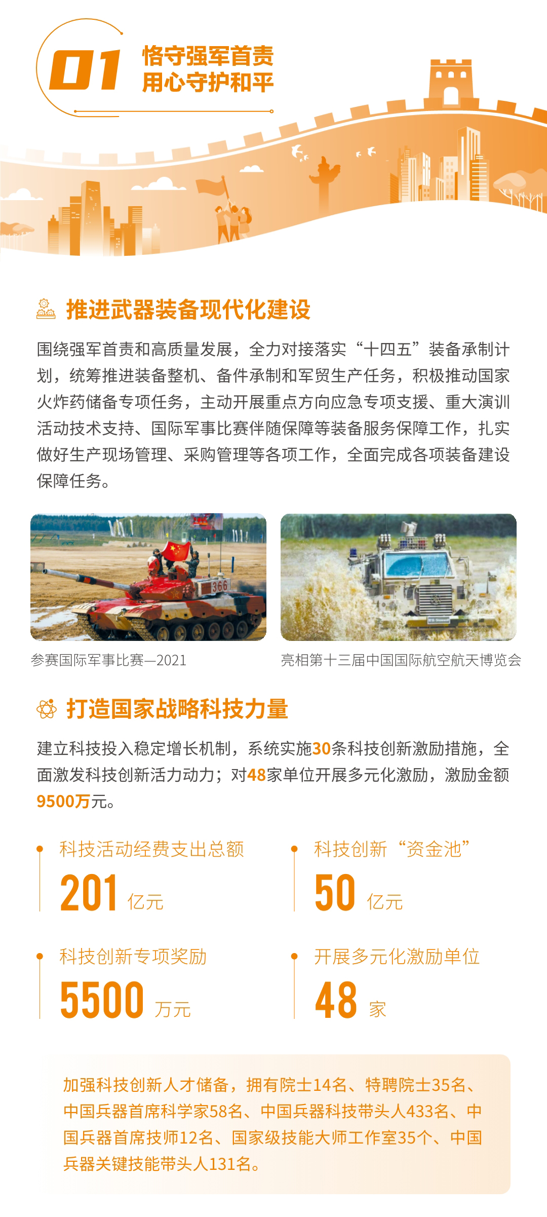 近日,兵器工業(yè)集團正式發(fā)布第十三份年度社會責(zé)任報告——《中國兵器工業(yè)集團有限公司2021年社會責(zé)任報告》,以“用心守護和平、用力爭創(chuàng)一流、用情溫暖社會”為主題,從恪守強軍首責(zé)、服務(wù)經(jīng)濟建設(shè)、共創(chuàng)美好生活三個維度,向社會全面披露2021年度履責(zé)實踐和履責(zé)業(yè)績?!秷蟾妗愤B續(xù)第三年獲得中國企業(yè)社會責(zé)任報告評級專家委員會“五星佳”評級,兵器工業(yè)集團成為軍工行業(yè)唯一連續(xù)11年獲得五星及五星佳最高評級的企業(yè)。 一圖解碼兵器工業(yè)的“責(zé)任力量” |